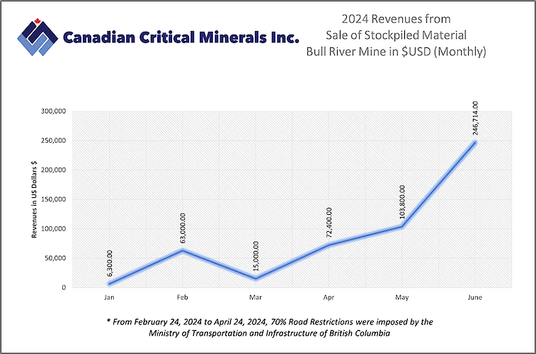 2024 Revenues from Sale of Stockpiled Material Bull River Mine in $USD (Monthly)